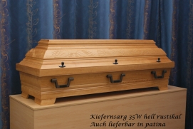 |  |  | | Kremationssarg Nr. 01, auch jeweils in Überbreite oder Überlänge lieferbar | Kremationssarg Nr. 03 | Kiefernsarg M2, grau gebeizt und lackiert |  |  |  | | Kiefernsarg Nr. 07 Palme | Kiefernsarg Nr. 3 | Kiefernsarg Nr. 4 |  |  |  | | Kiefernsarg Nr. 3N | Kiefernsarg Nr. 3N champagner | Kiefernsarg Nr. 80 |  |  |  | | Kiefernsarg Nr. 59 hell | Kiefernsarg Nr. 35W patina | Kiefernsarg Nr. 62 Intarsie Apricot |  |  |  | | Kiefernsarg Nr. 35 W hell | Kiefernsarg Nr. 20 bernstein, auch in Überbreite lieferbar | Kiefernsarg Nr. 58 |  |  |  | | Kiefernsarg Nr. 20 Deckend weiß | Kiefer 26 Bernstein | Astkiefer 416 |